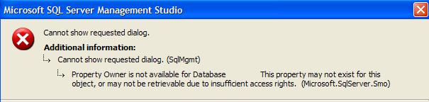 Property Owner is not available for Database ‘[DBName]’. This property may not exist for this object, or may not be retrievable due to insufficient access rights.