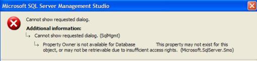Situation – You right-click on the database and choose properties. Now, instead of the database properties opening up, you get the message.