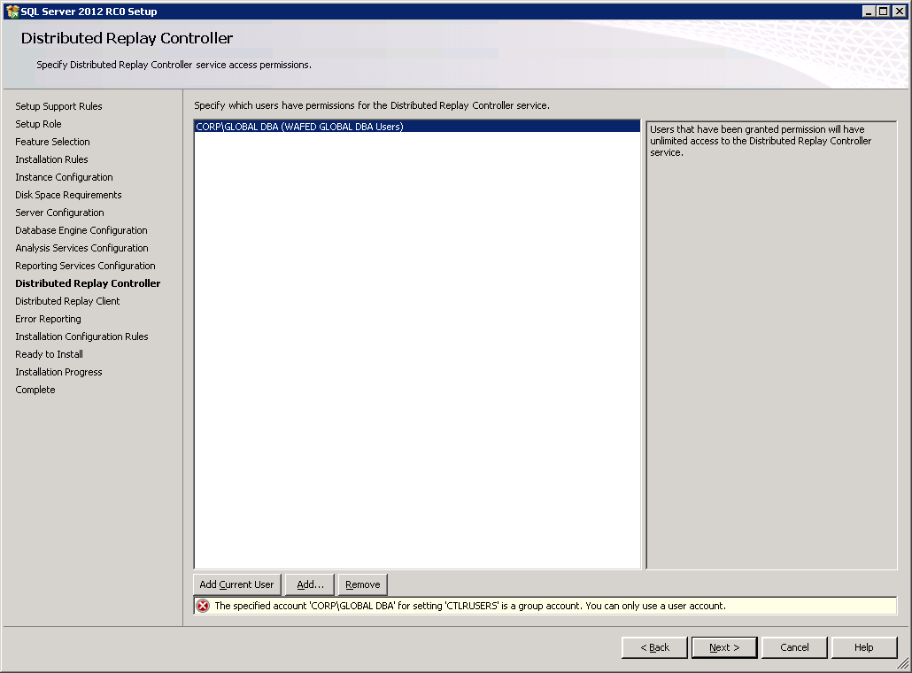 16. Error for controller – I had added a domain Group for Replay controller permissions and there was a clear error which stated that user account needs to be used –