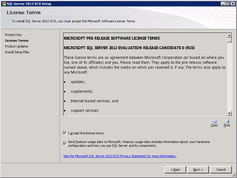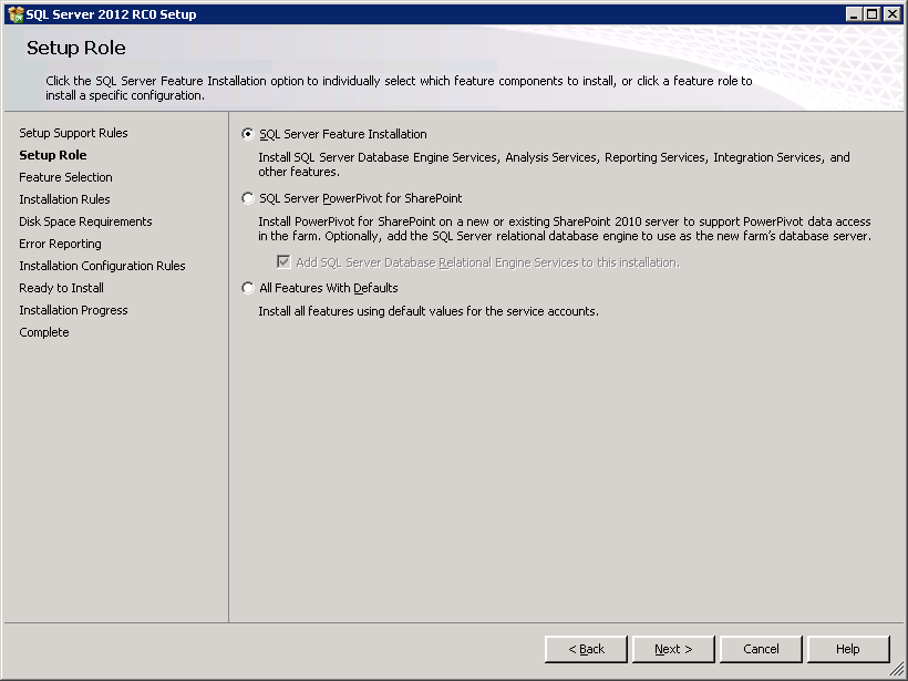 Below are the steps which I had followed to install and configure SQL Server 2012 RC0 –