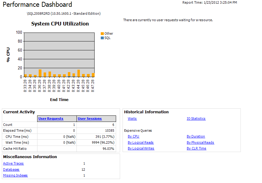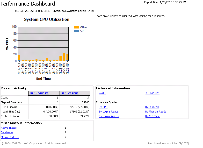 Today I decided to leverage performance dash board report for my SQL Server 2008 R2 instance and SQL 2012 RC 0 Instances.