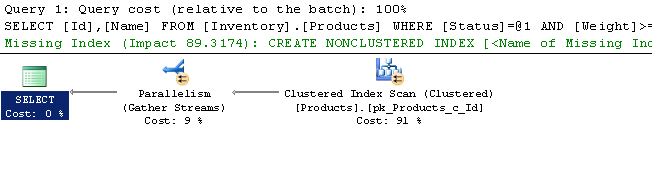 The execution plan for the above query clearly talks about parallelism and also gives some suggestion on index.