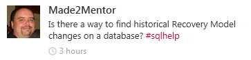 The idea about PBM didn’t came to my mind early on, however it eventually came and I decided to test it to see if we can track historical info on recovery model changes.