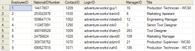 --Read the database using Execute AS EXECUTE AS User='Test_User' USE [AdventureWorks] SELECT * FROM HumanResources.Employee