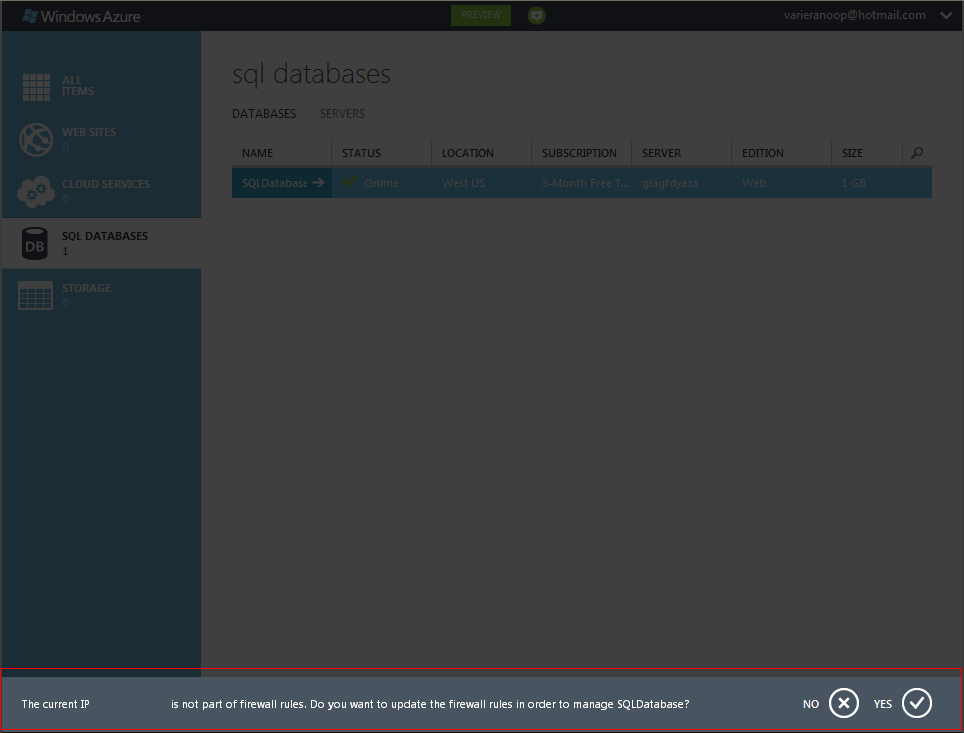 SQLSailor is exploring(Part1) – Creating my first SQL Database on Windows Azure