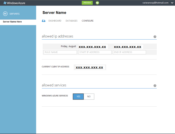 Before we see how we can configure the IP address to grant access, we will need to review what levels of firewall rules can be set on Windows Azure.