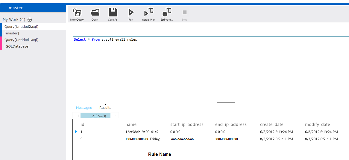 The database level IPs or range can be checked using another view sys.database_firewall_rules and we will need to connect to the database and run this view to get the accurate details.