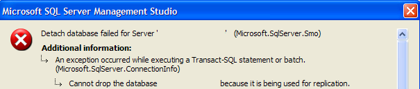 Today I had to ‘detach’ a database from one of my development environments and straight away got this error !