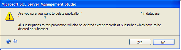 I selected the required publication and went ahead with delete operation. The wizard was double checking with me if I was sure. I said Yes to it !
