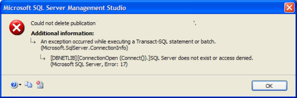 It’s very much clear that removing a publication will check connections to the Distributor and in case it’s not available for connection, there will be connection errors.