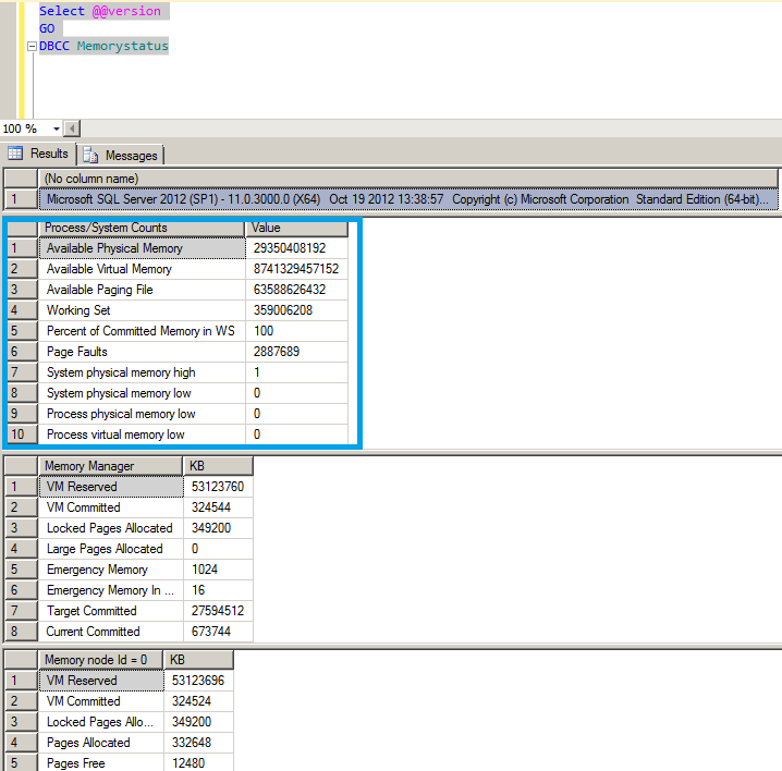 This post is not a detailed explanation of DBCC Memorystatus for SQL2012,but a quick observation I made recently for the node Process/System counters.