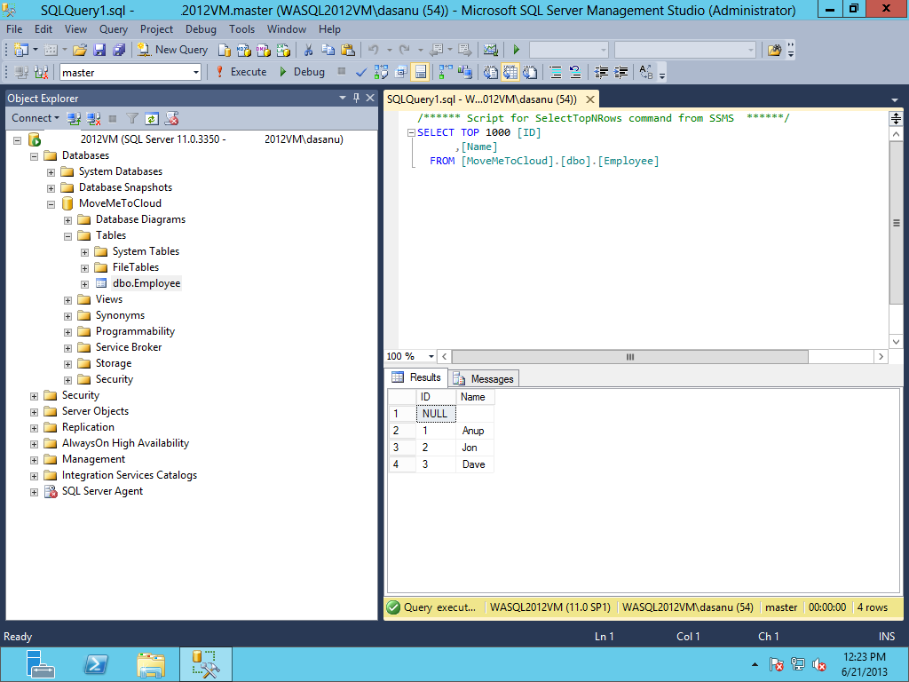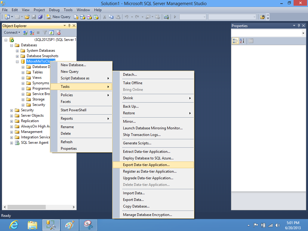 Today we will see how an On-premise database can be moved to a SQL Server instance running up on a Windows Azure Virtual Machine.There are multiple ways to accomplish this and in this post we will see how this can be achieved using SSMS wizards.