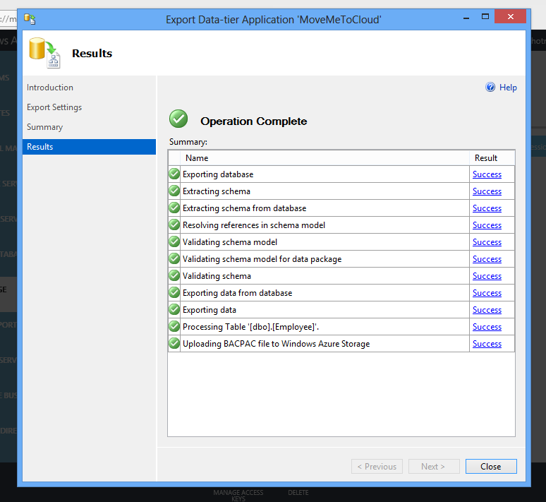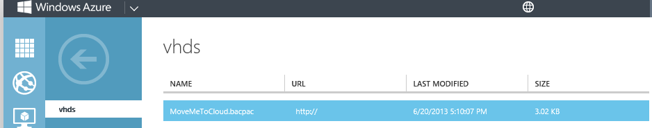 Once the export is completed successfully we can check and verify that the BACPAC is indeed available under Windows Azure Storage Account