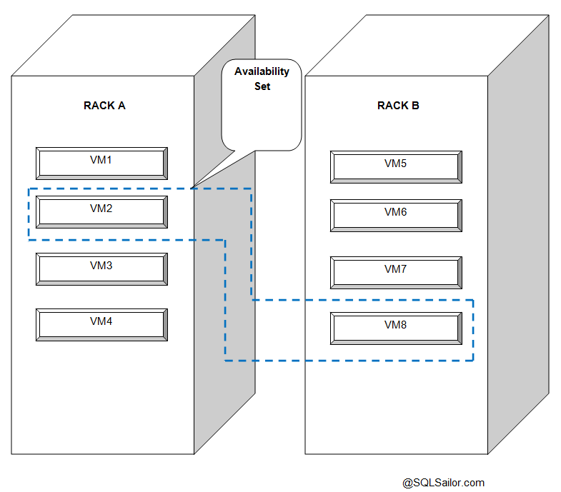 When you configure 2 VMs in an availability set, Microsoft will never take them down at the same time during maintenance windows(Related to update domains), and also it can overcome single point of failures within the racks(Fault domains).