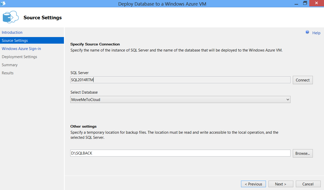 This post talks about the journey of a database named “MoveMeToCloud” which is hosted on SQLServer 2014 RTM on-prem instance to a SQL Instance which is hosted on an Azure VM.