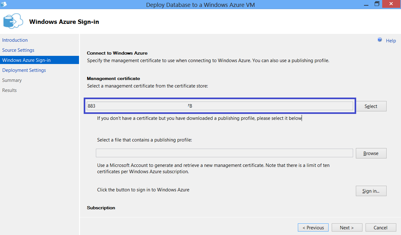 By using the Sign in option we can get the required certificate. This is a smart wizard and it will pull the certificate details for you.