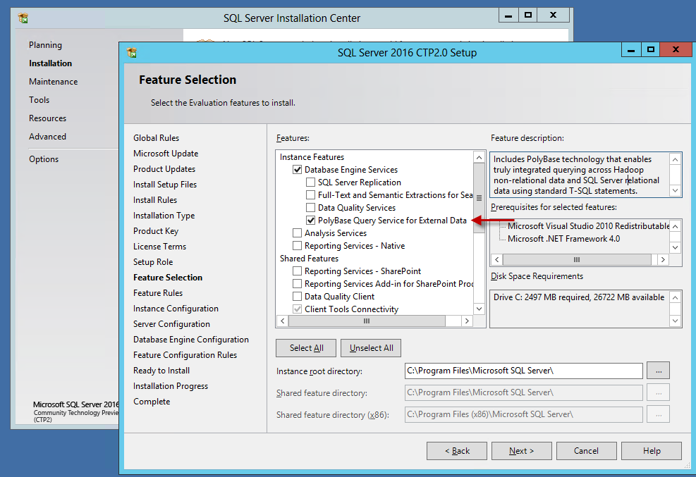 You can notice a new instance feature called PolyBase Query Service for External Data.