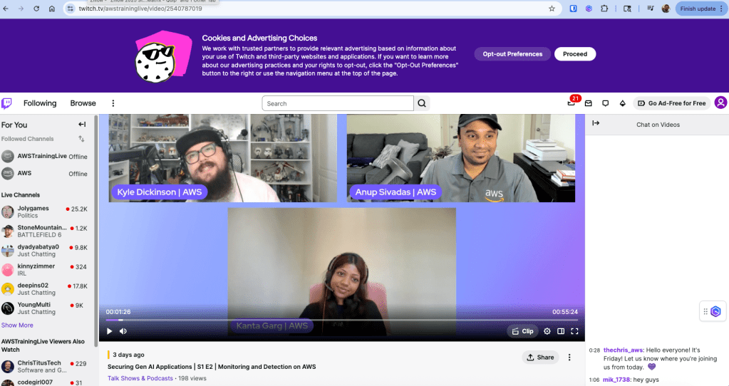 Generative AI Security Series. In this episode, we focused on monitoring and detection aspects and dove deep into GuardDuty, Security Hub etc.