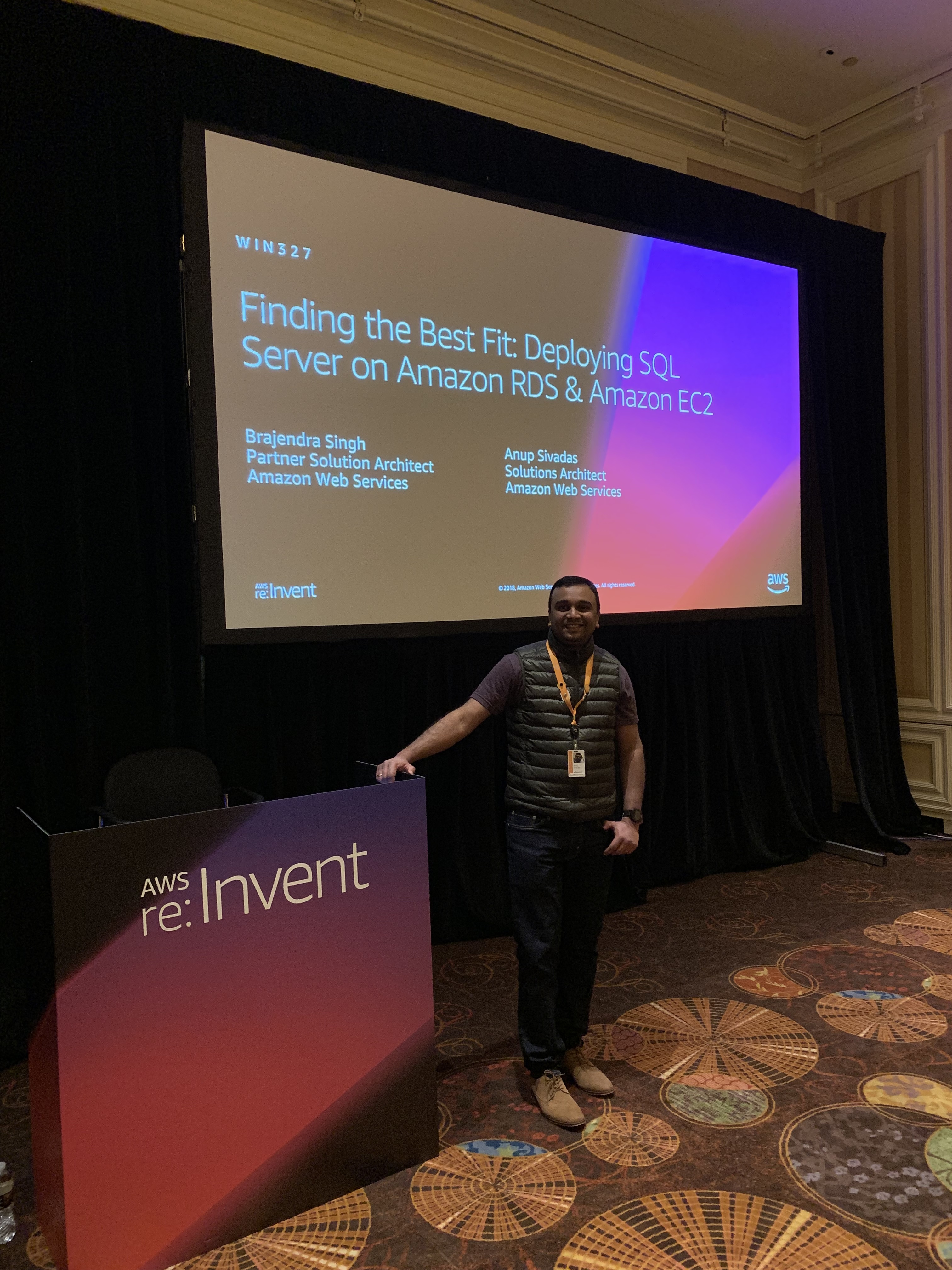 Speaker at AWS re:Invent 2018 and delivered a Chalk Talk , WIN327- “Finding the Best Fit: Deploying SQL Server on Amazon RDS & Amazon EC2“.